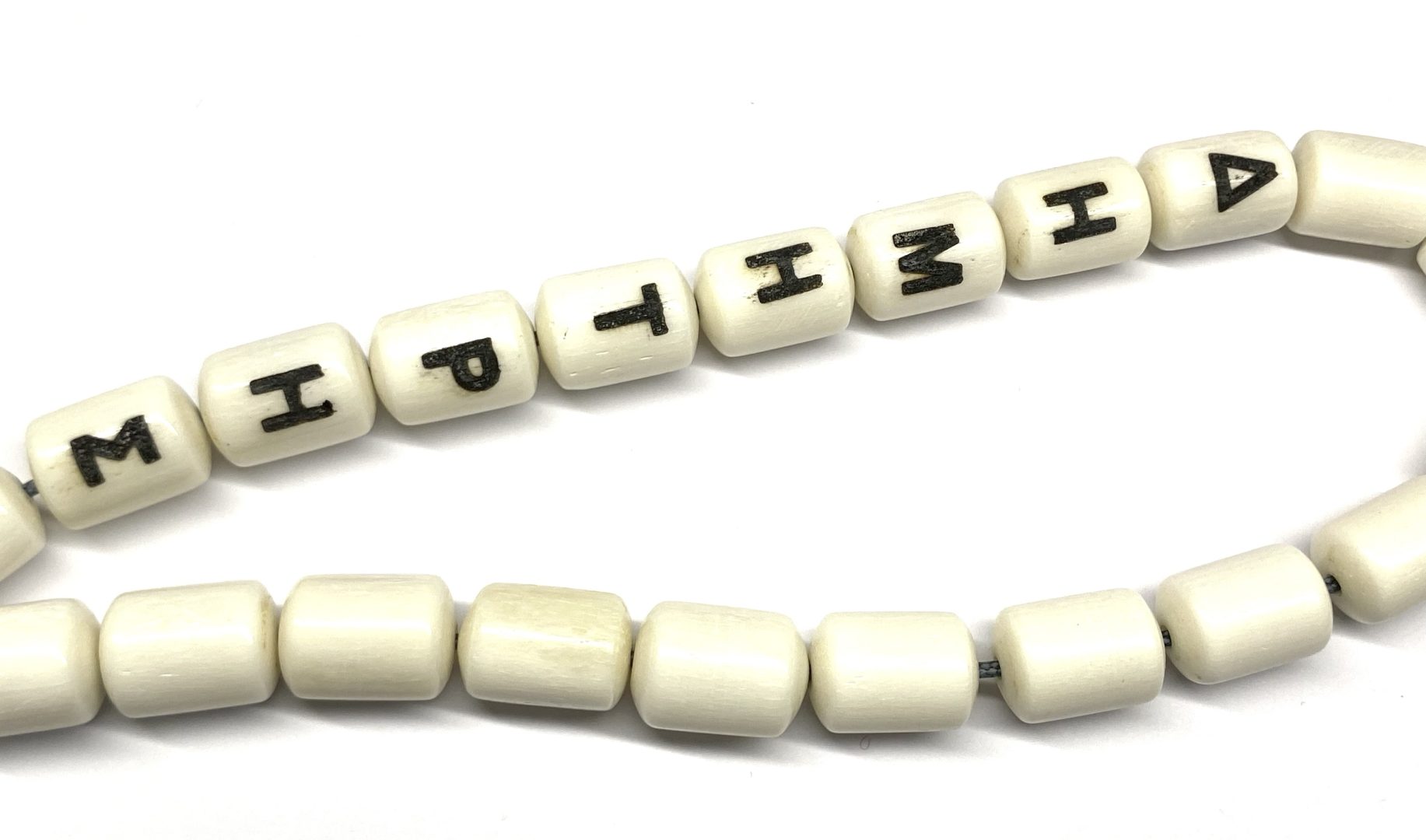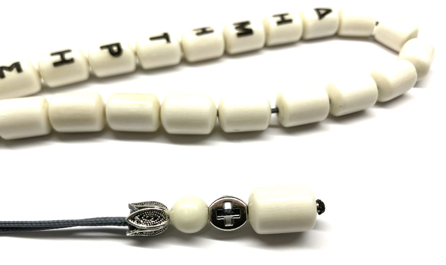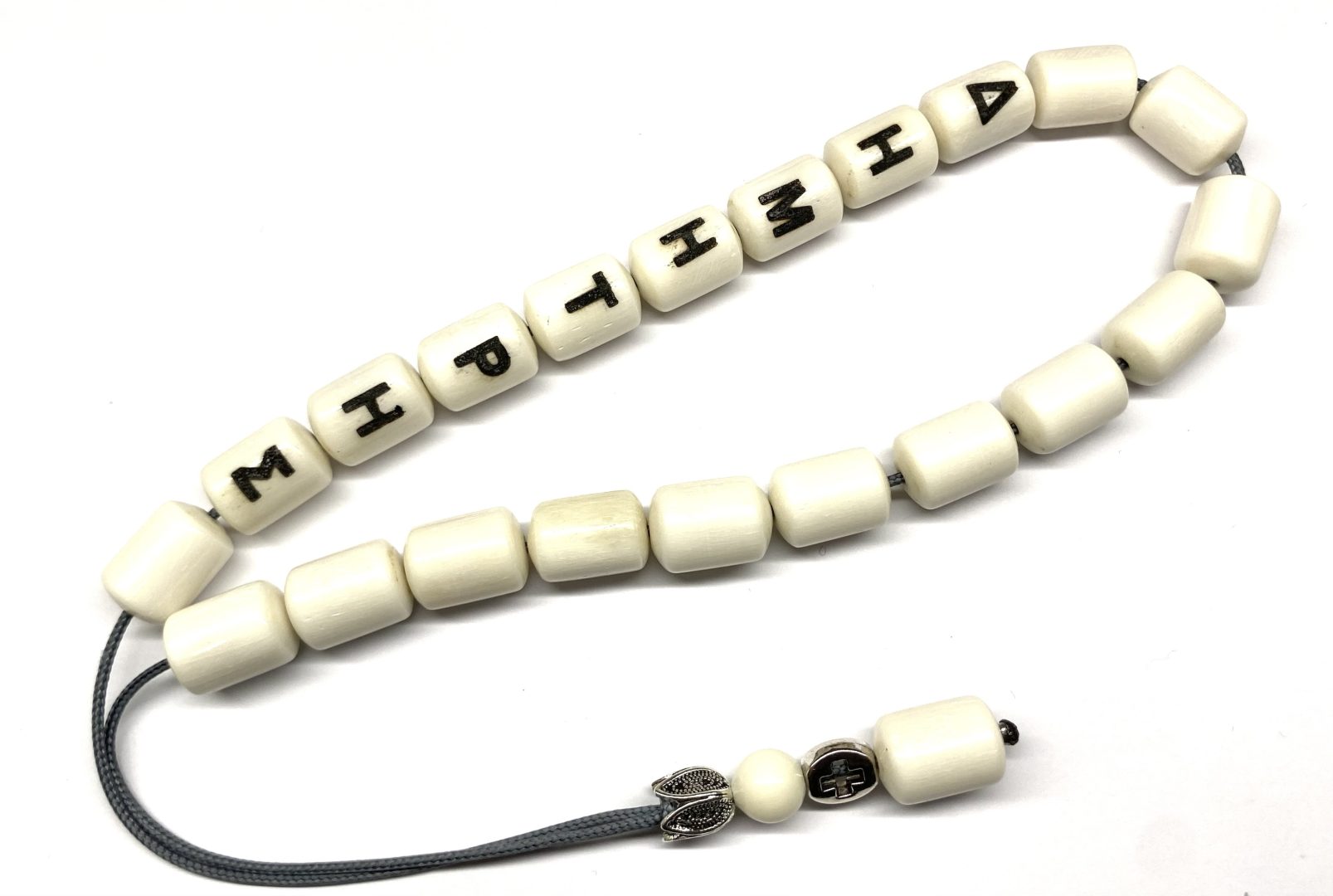 Χειροποίητο κομπολόι από κόκκαλο καμήλας σε σχήμα βαρελάκι με χάραξη δικής σας επιλογής .