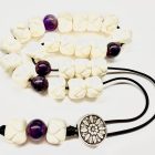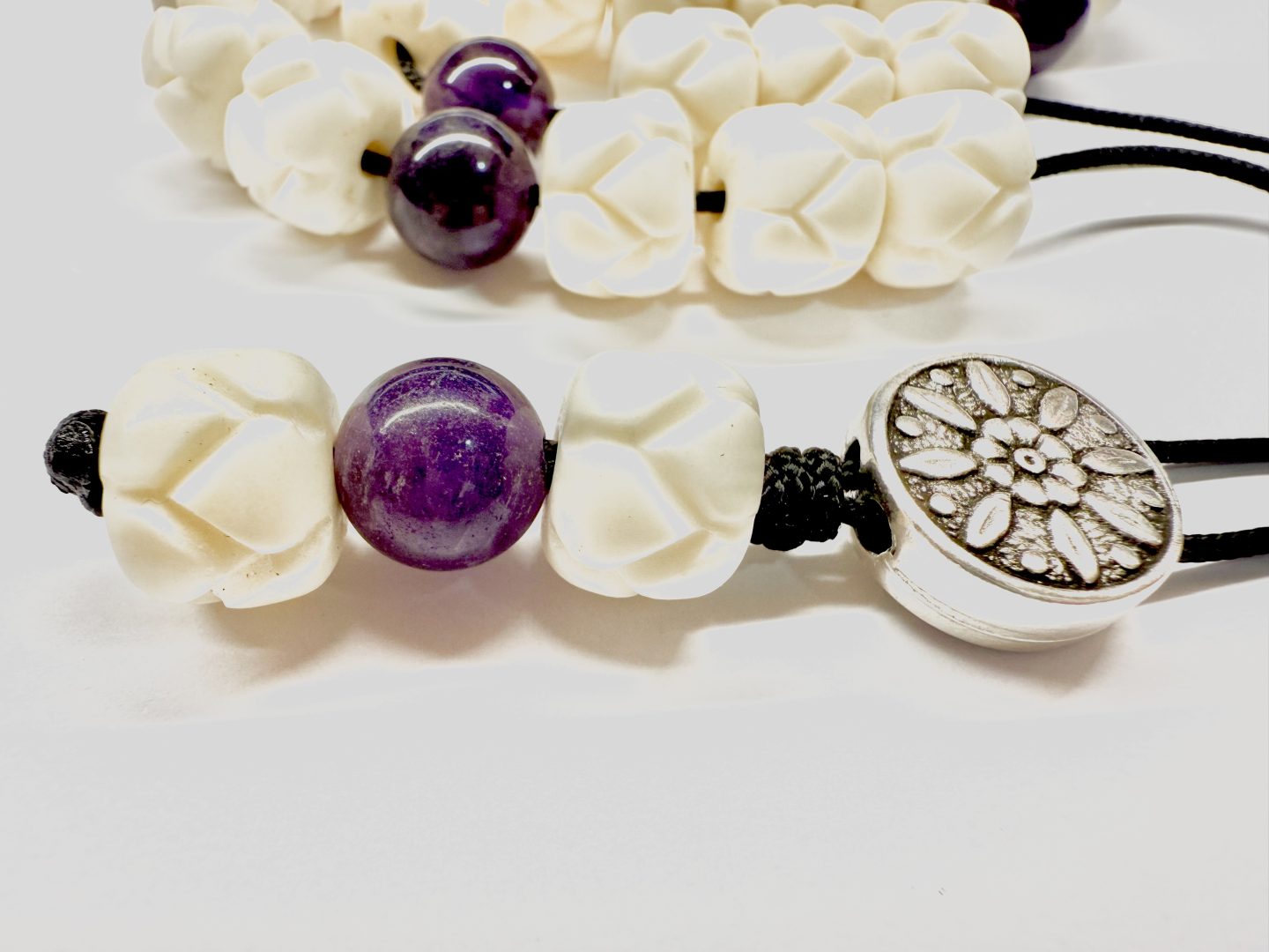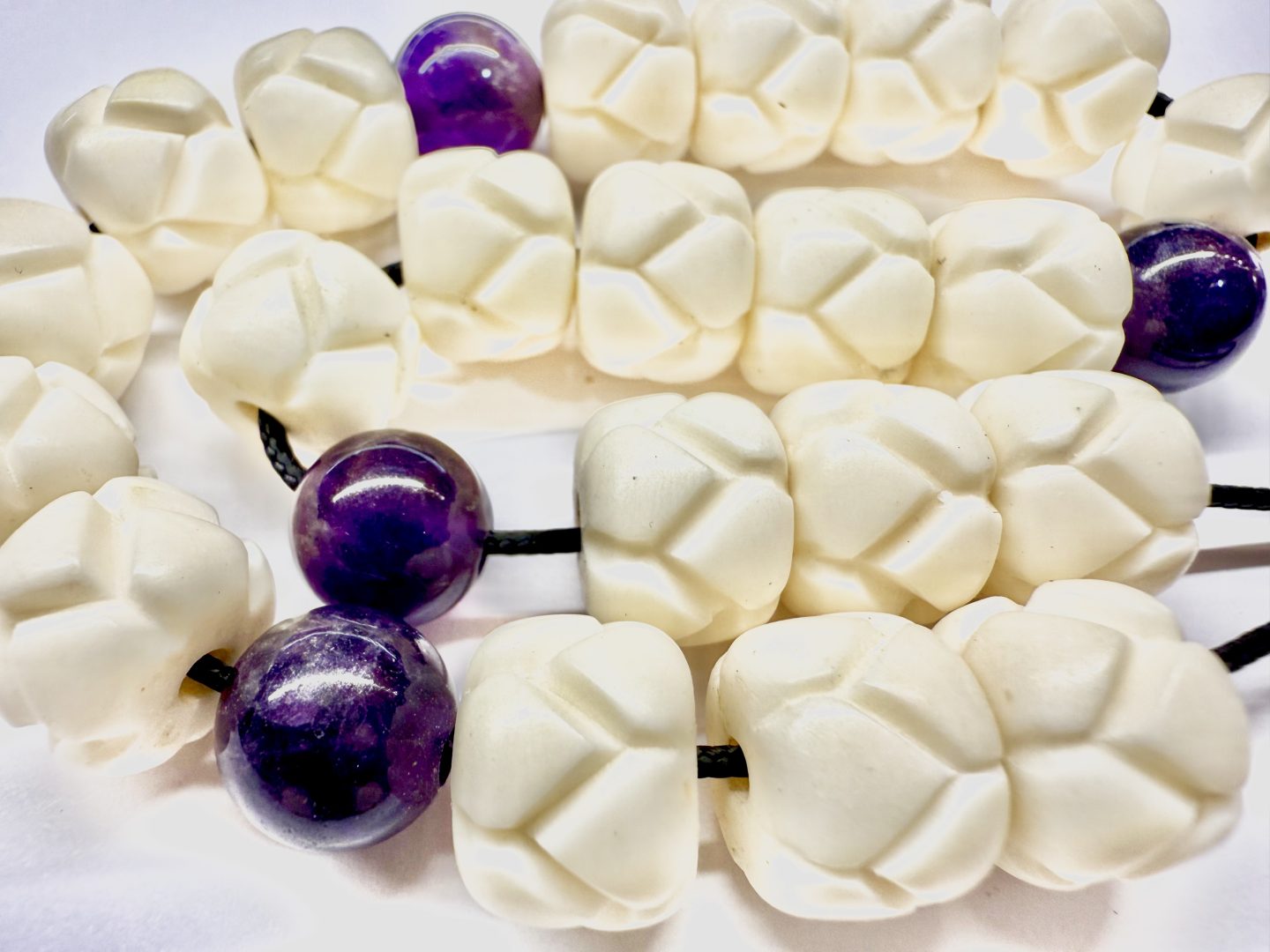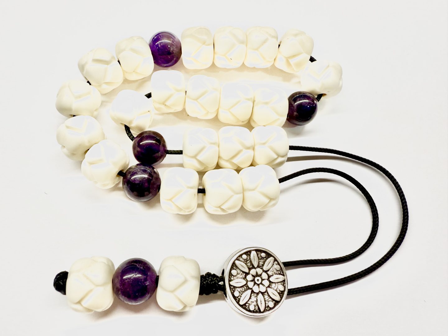 Χειροποίητο κομπολόι από κόκκαλο καμήλας με πολύ ιδιαίτερο σκάλισμα σε κάθε χάντρα και ημιπολύτιμο λίθο Αμέθυστο .