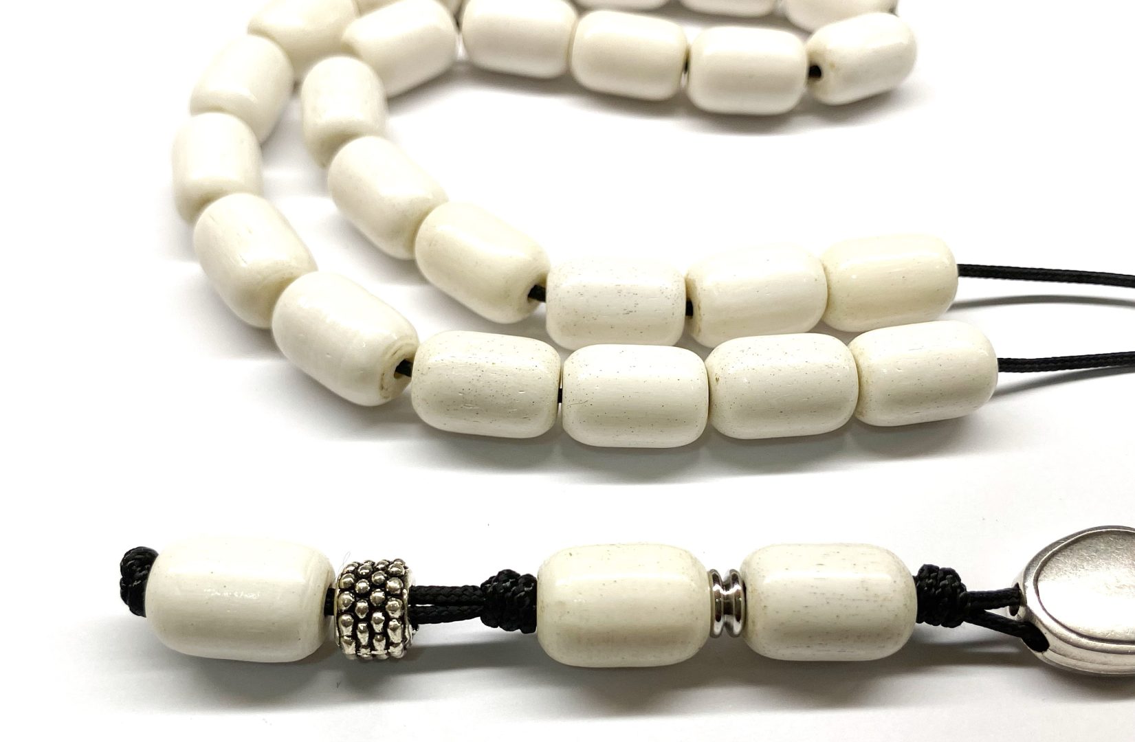 Το κόκκαλο καμήλας είναι ένα από τα πιο παλιά υλικά για την κατασκευή κομπολογιού. Με κατάλευκο χρώμα και πολλές φορές στολισμένο με πολύτιμα υλικά όπως Κεχριμπάρι και ασήμι. Το κομπολόι από κόκκαλο καμήλας δίνει πάντα ένα ζεστό παίξιμο με ιδανικό βάρος και έναν διακριτικό λεπτό ήχο. Ανθεκτικό σε χτυπήματα και τυχών πτώσεις.