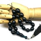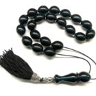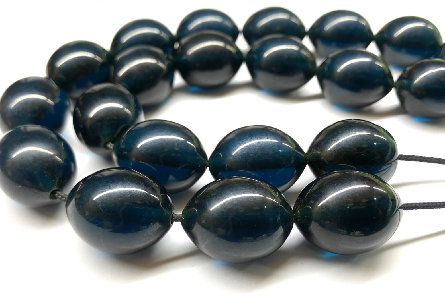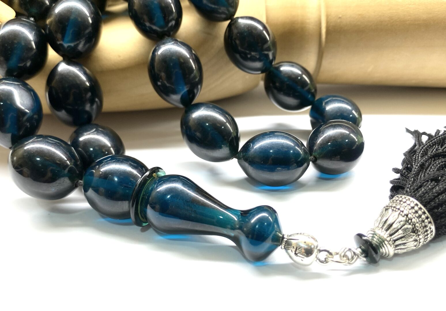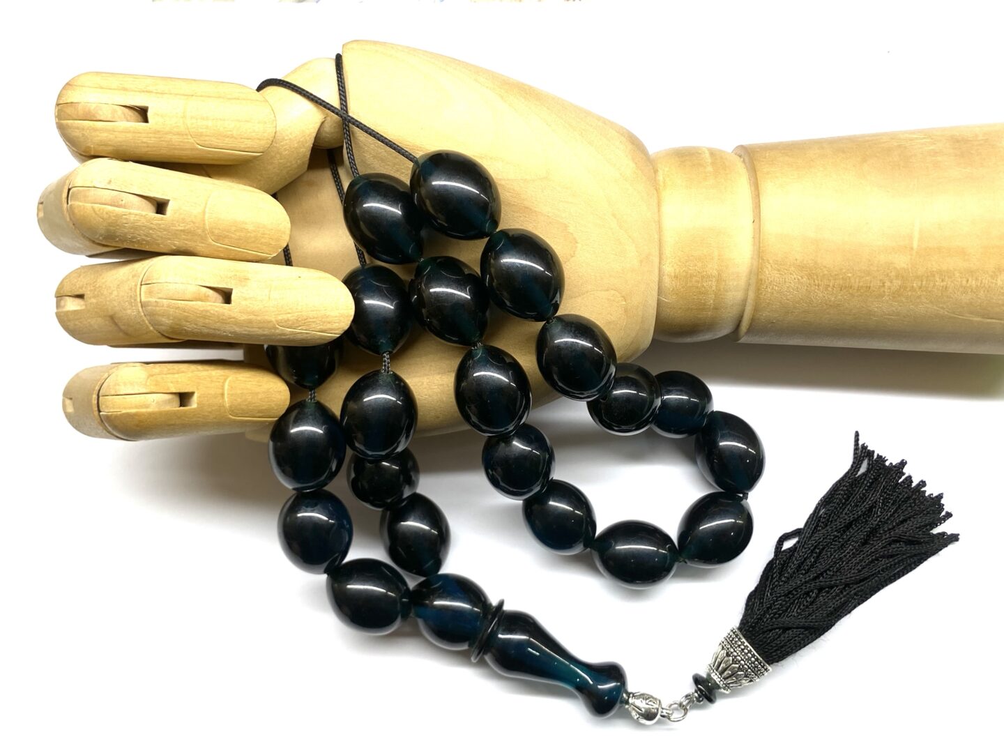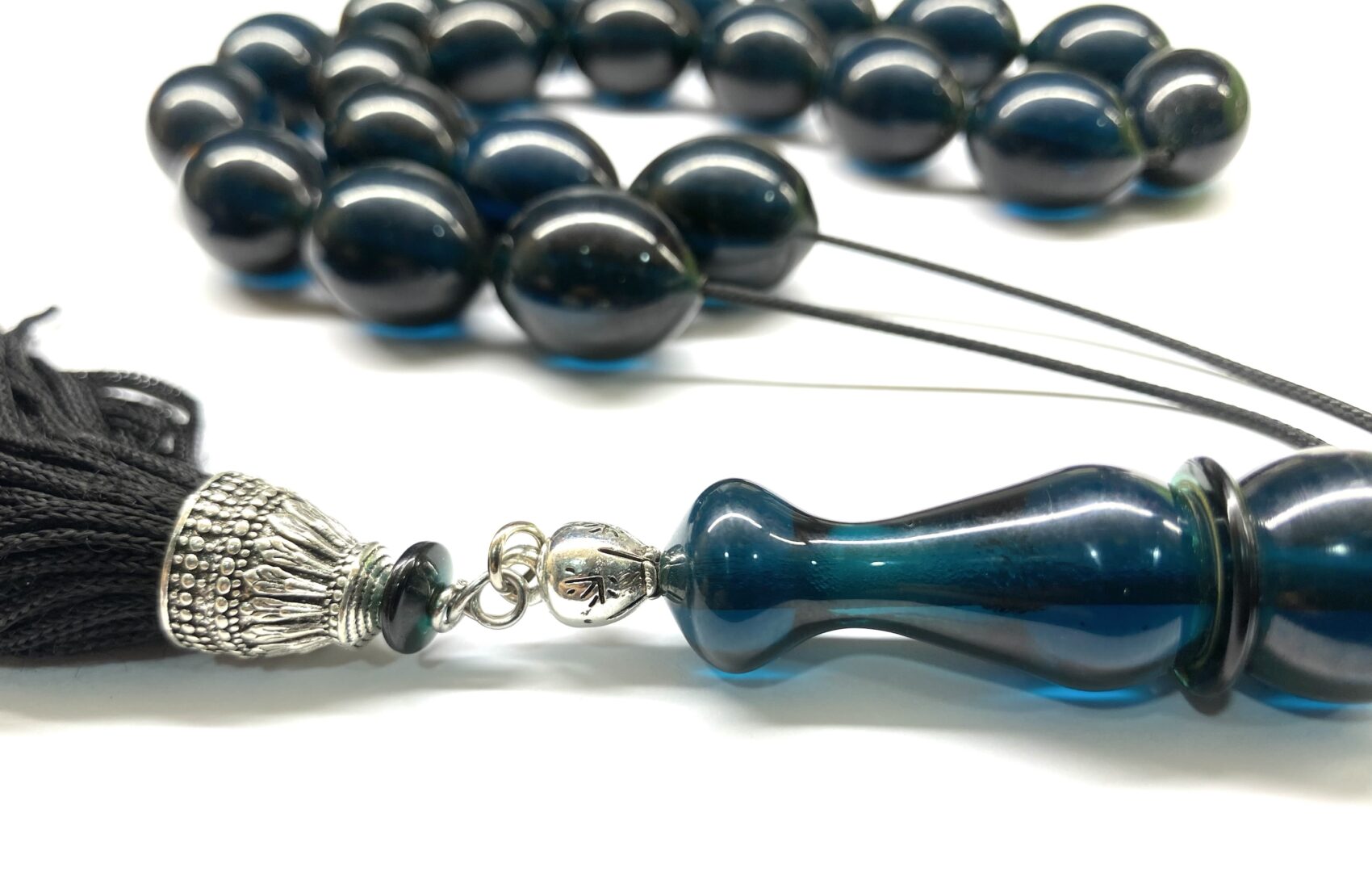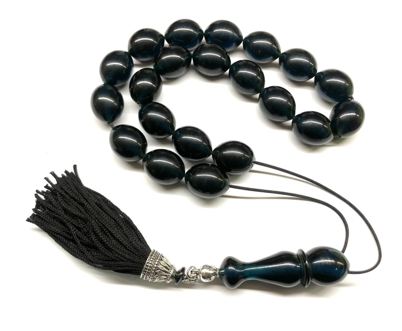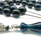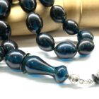 Χειροποίητο κομπολόι από Μαστίχα Αιγύπτου νέας κοπής σε ιδιαίτερο χρώμα σκούρο πετρόλ διαυγές .