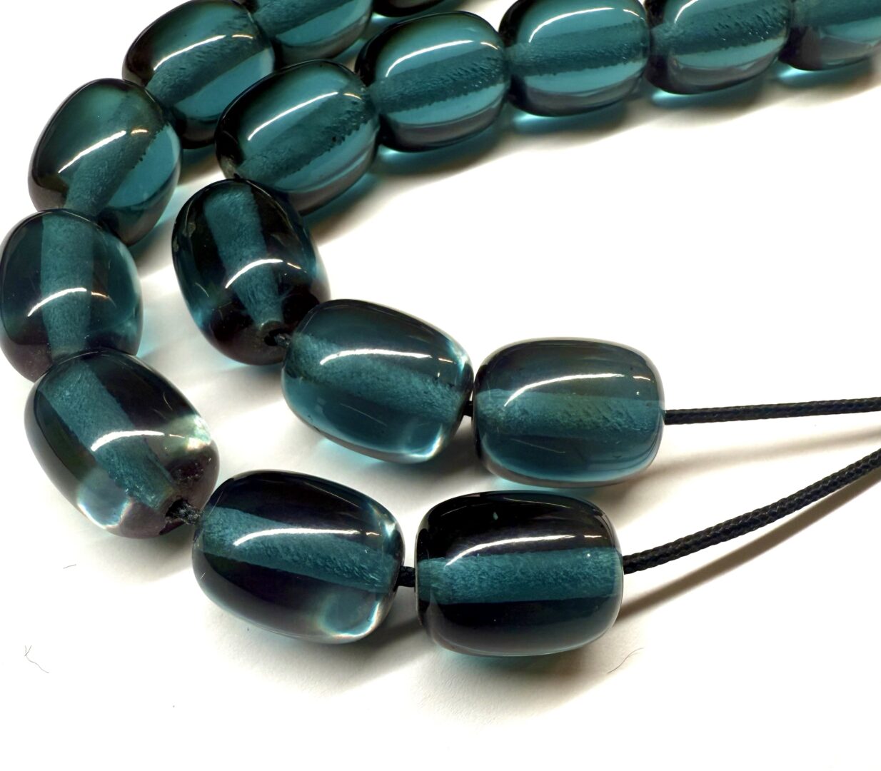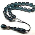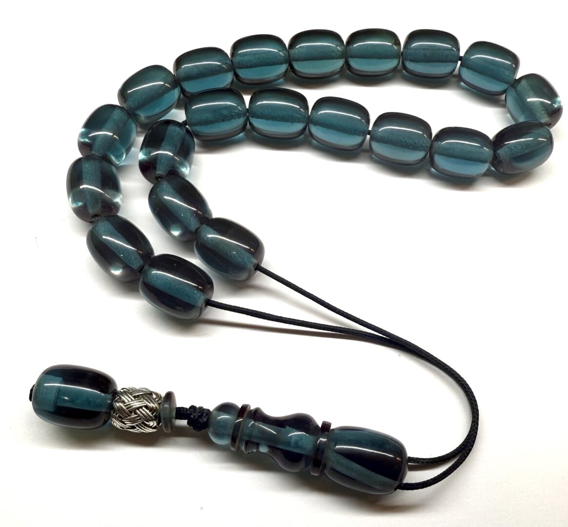 Χειροποίητο κομπολόι από Μαστίχα Αιγύπτου νέας κοπής σε πετρόλ διαυγές χρώμα .