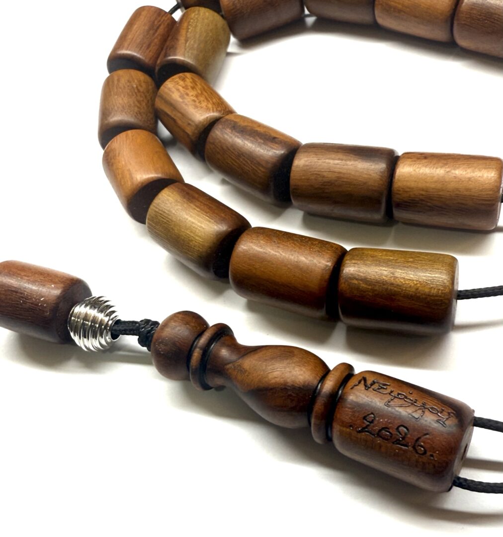 Οι χάντρες του κομπολογιού είναι δουλεμένες μία μία στον τόρνο από τον καταξιωμένο τεχνίτη ξύλου κο Σιράγα Νίκο.