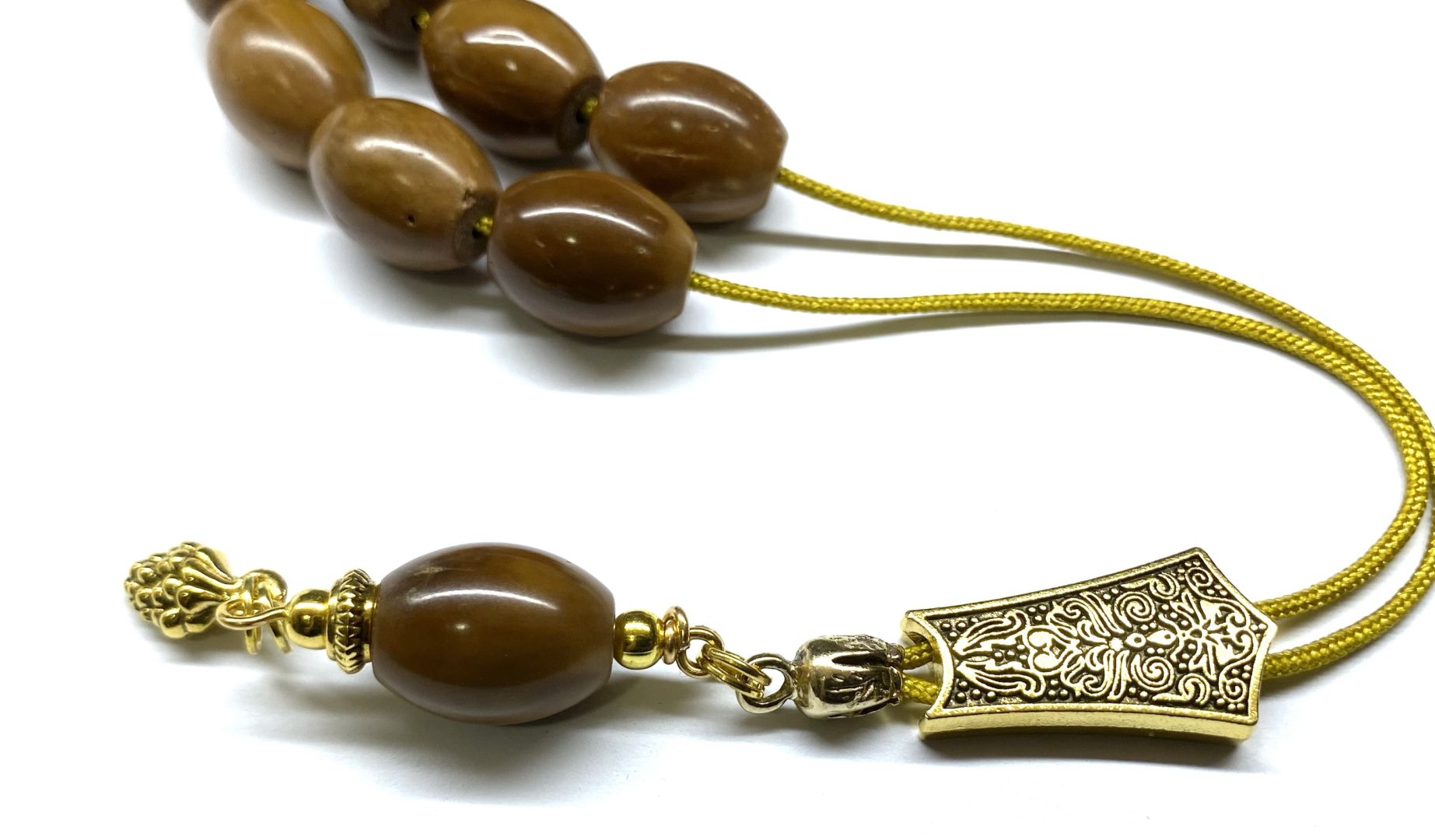 Χειροποίητο κομπολόι από ξύλο φοινικόδεντρου Κούκ και μπρονζέ χρυσά στοιχεία .