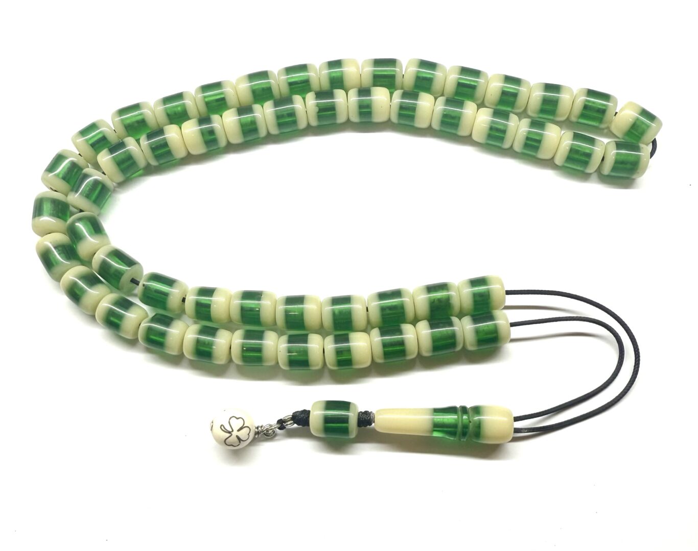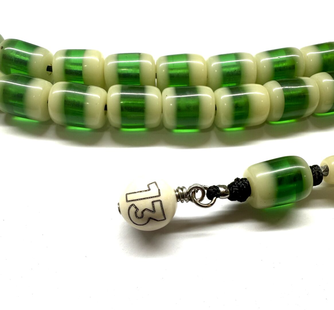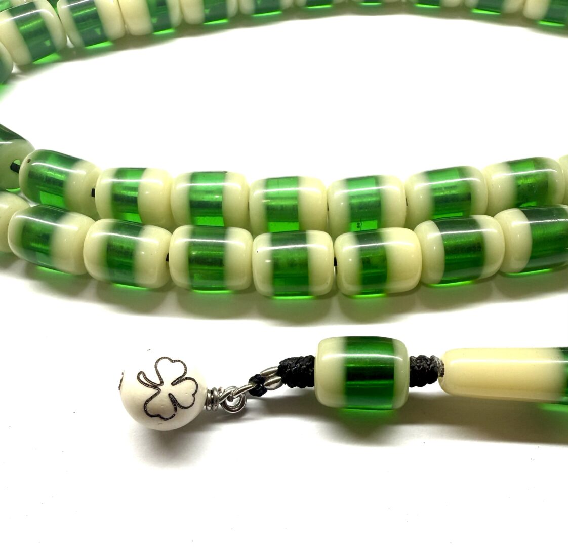 Κρητικό κομπολόι, μεγάλο, με 51 χάντρες από πράσινη λευκή ρητίνη .