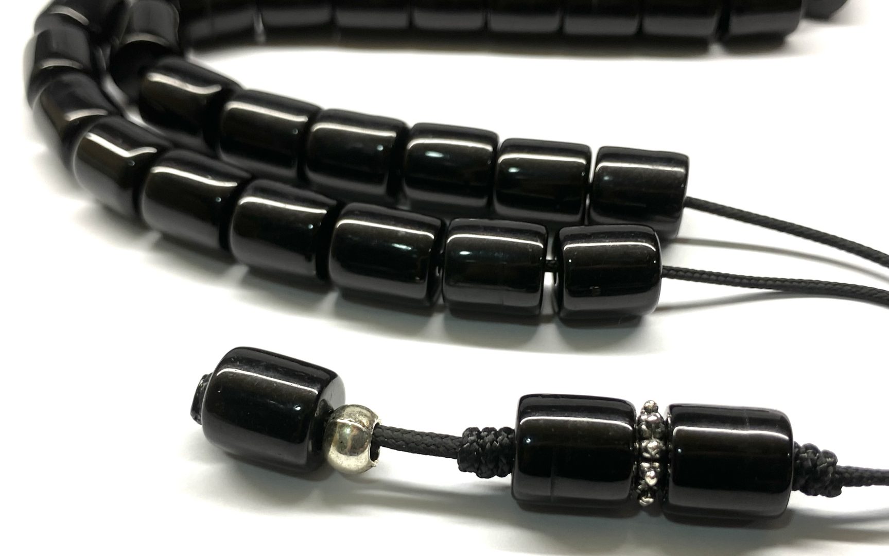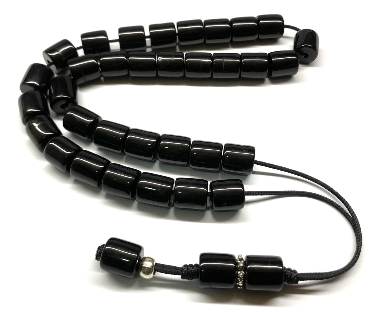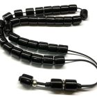 Κρητικό κομπολόι 33άρι μαύρο με χάντρες από ρητίνη σε σχήμα βαρελάκι .