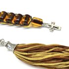 Δεμένο με 21 + 2 χάντρε, σταυρό και πλούσια φούντα στα τελειώματα .