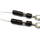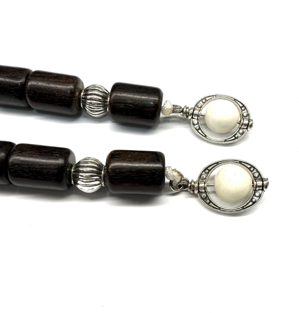 Χειροποίητο μπεγλέρι από ξύλο Έβενου σε σχήμα βαρελάκι και 2 χάντρες από Κόκκαλο καμήλας στα τελειώματα.