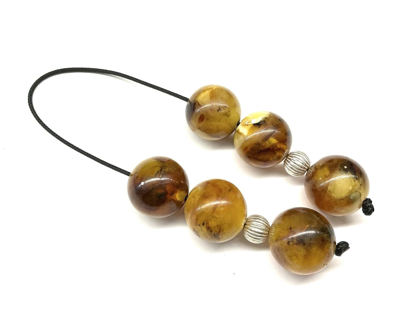 Χειροποίητο μπεγλέρι από Κεχριμπάρι πρεσαριστό και ασήμι 925 °.
