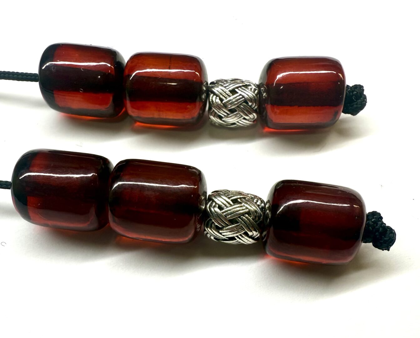 Χειροποίητο μπεγλέρι από Μαστίχα νέας κοπής σε σχήμα βαρελάκι σε σκούρο κονιάκ χρώμα.