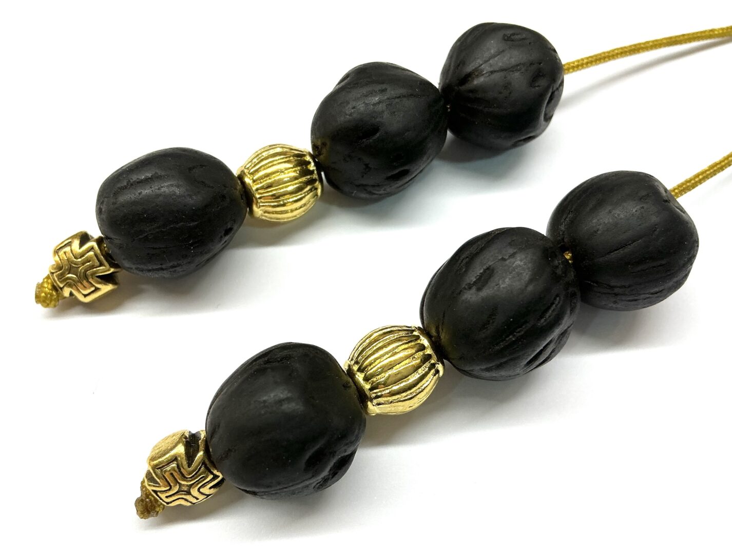Χειροποίητο μπεγλέρι από αρωματικό μοσχοκάρυδο μαύρο, χρυσές λεπτομέρειες και άρωμα λιβάνι.