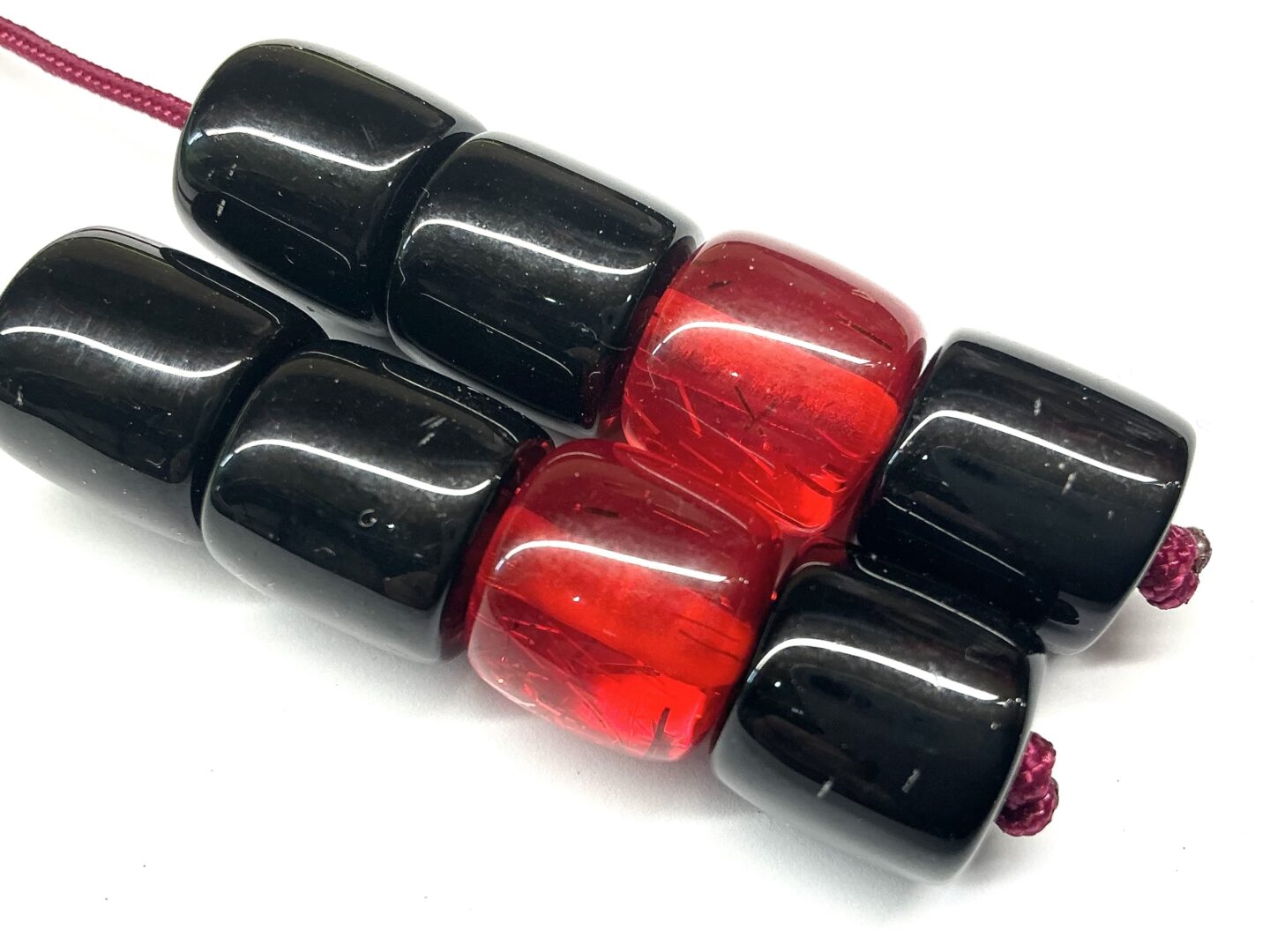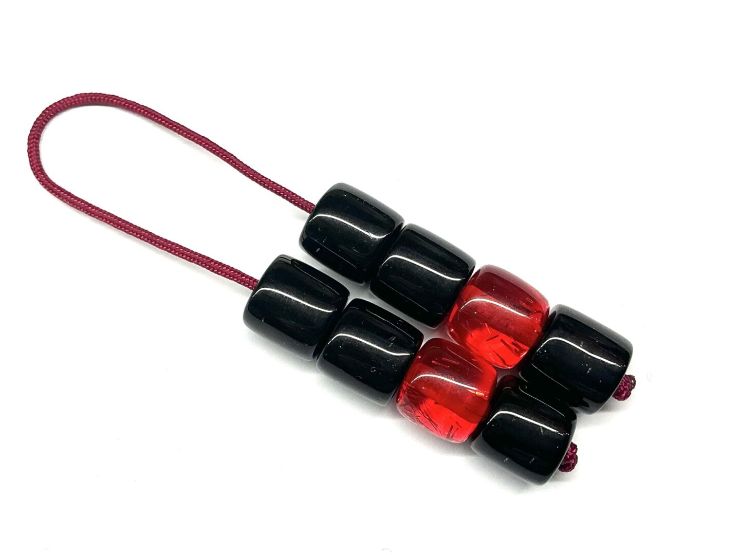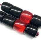 Χειροποίητο μπεγλέρι από ρητίνη δεμένο με 8 χάντρες σε μαύρο και κόκκινο χρώμα.