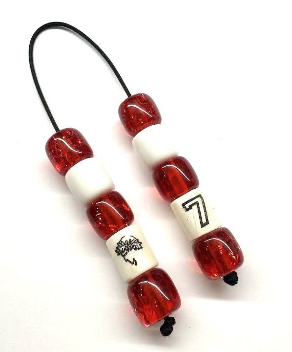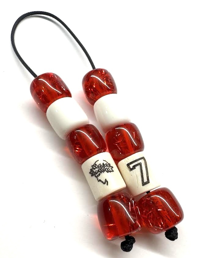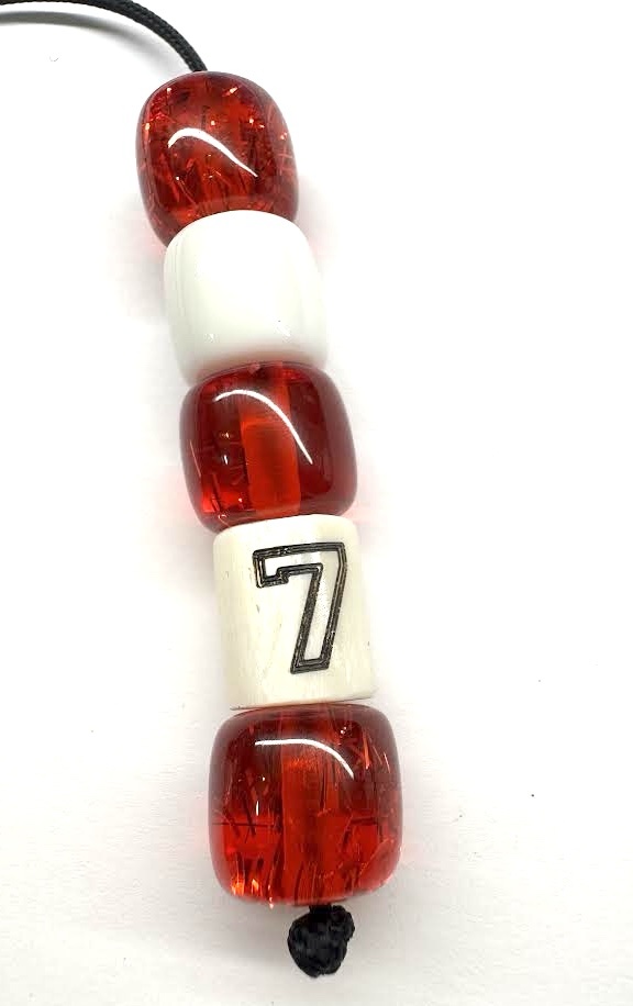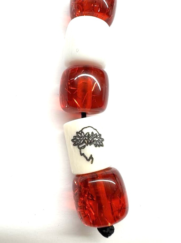 Χειροποίητο μπεγλέρι από ρητίνη και κόκκαλο καμήλας χαραγμένο με το σήμα του Ολυμπιακού, δεμένο με 10 χάντρες .