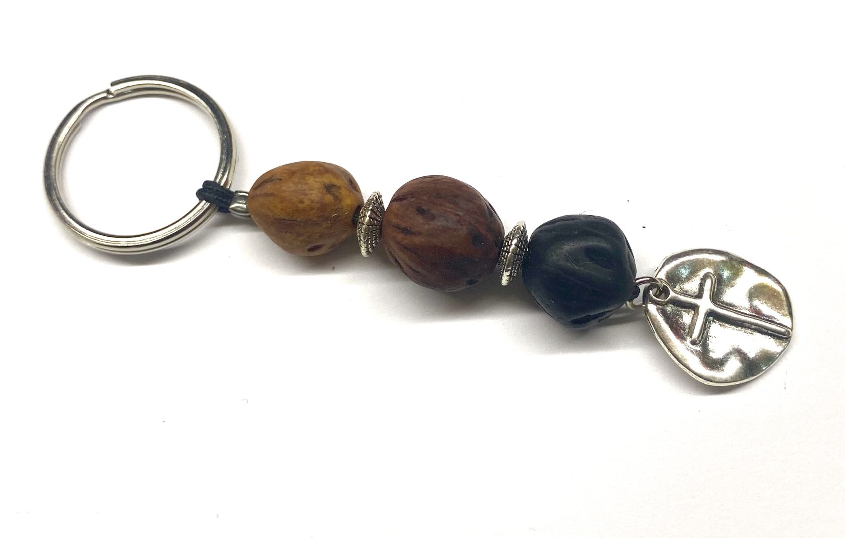 Χειροποίητο μπρελόκ αρωματικό με χάντρες από καρπό μοσχοκάρυδου .