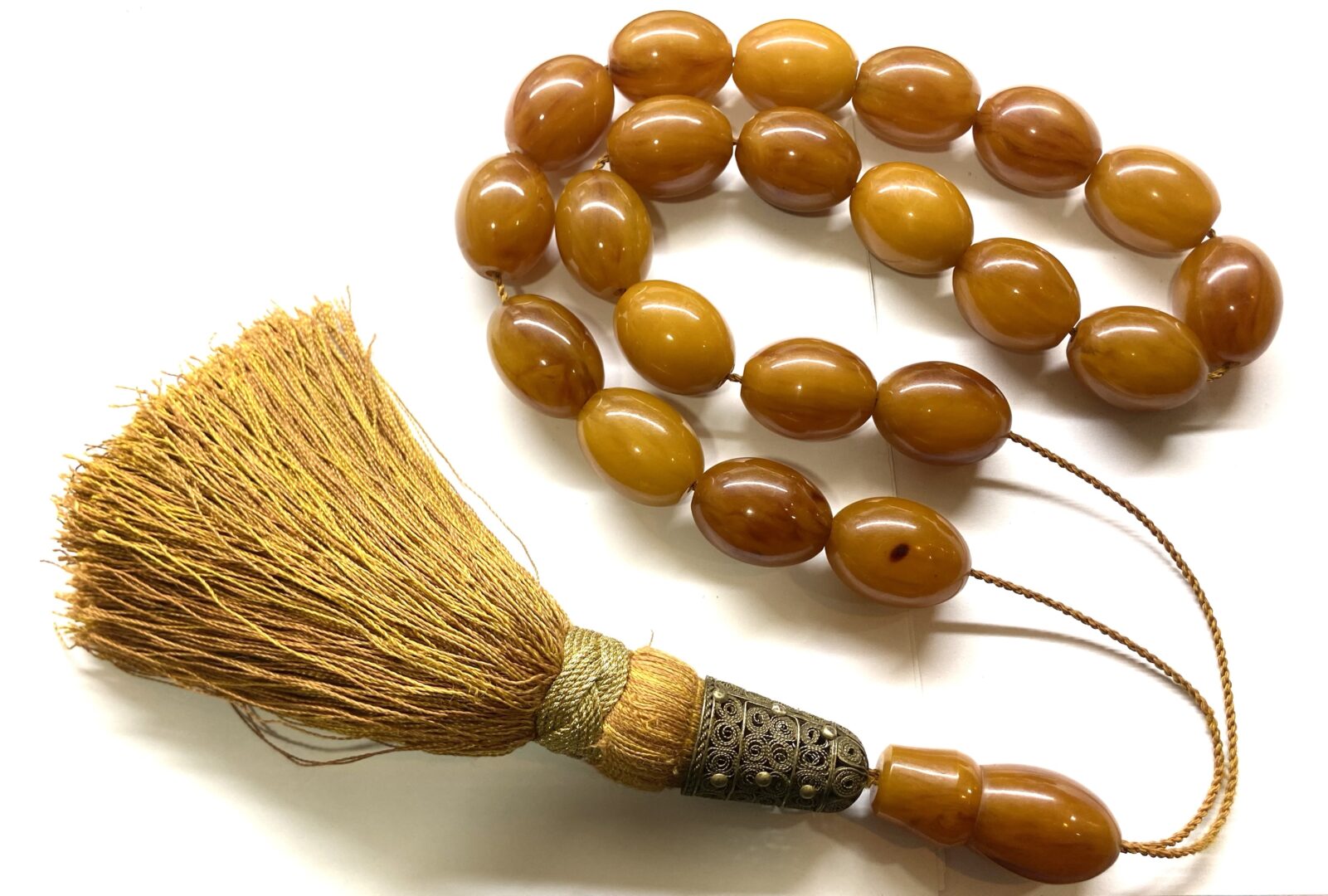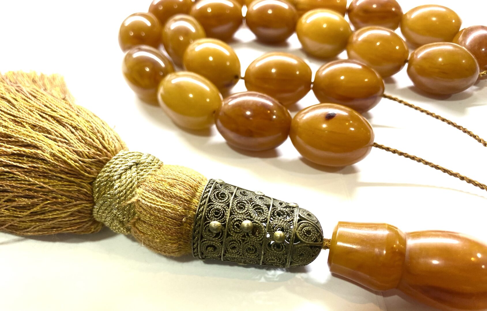 Συλλεκτικό παλιό κομπολόι από Μαστίχα Αιγύπτου σε κροκί χρώμα .